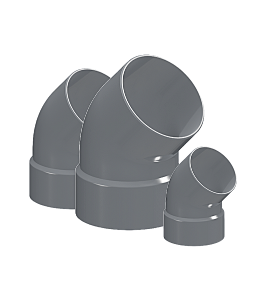 Codo PVC sanitario gris para giros seguros en sistemas de drenaje y alcantarillado. Fabricado en PVC rígido, resistente a corrosión y desgaste, ideal para instalaciones sanitarias domésticas e industriales.
