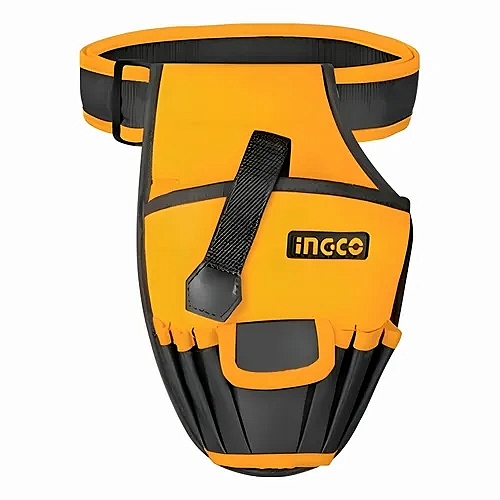 Porta-Herramientas con Cinturón INGCO HTBP03011: bolsa de poliéster 600D, 6 compartimentos, cinturón incluido, carga hasta 8 kg — ideal para taladro, brocas y accesorios en obra.