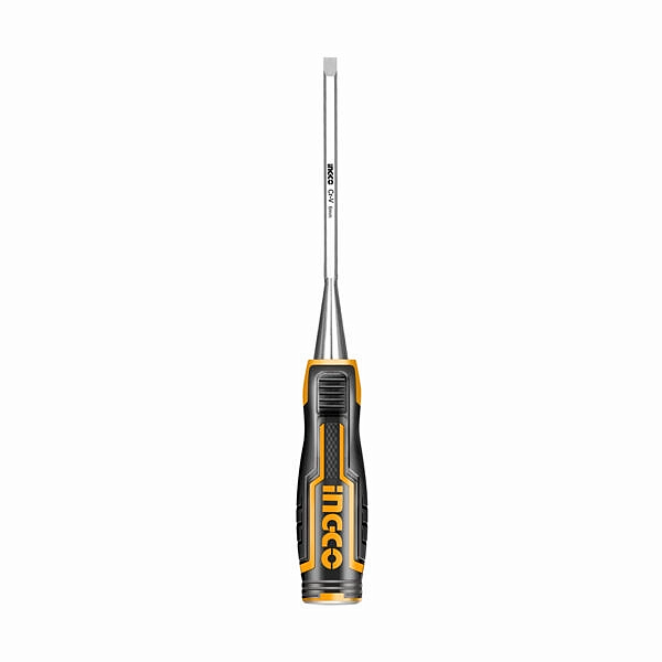 Su mango ergonómico bimaterial (TPR + PP) brinda un excelente agarre y control durante el trabajo, reduciendo la fatiga en usos prolongados. Además, su diseño está pensado para soportar impactos moderados de martillo sin dañar la estructura del formón.