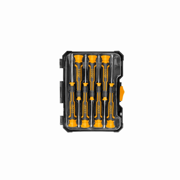El set de 7 piezas de destornilladores INGCO HKSD0718 es una solución compacta y funcional pensada para montaje, mantenimiento y bricolaje general. Este juego incluye destornilladores de puntas planas (SL) y cruzadas (PH) con variadas longitudes y grosores, cubriendo las medidas más frecuentes en tornillería doméstica e industrial.