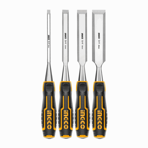 El Set de Formones Industriales INGCO HKTWC0401 incluye 4 formones de alta calidad diseñados para ofrecer precisión, durabilidad y confort en trabajos de carpintería profesional, ebanistería y montaje de muebles. Fabricados con hojas de acero al cromo-vanadio (Cr-V), estos formones garantizan una resistencia superior al desgaste y mantienen su filo por más tiempo, incluso en maderas duras.